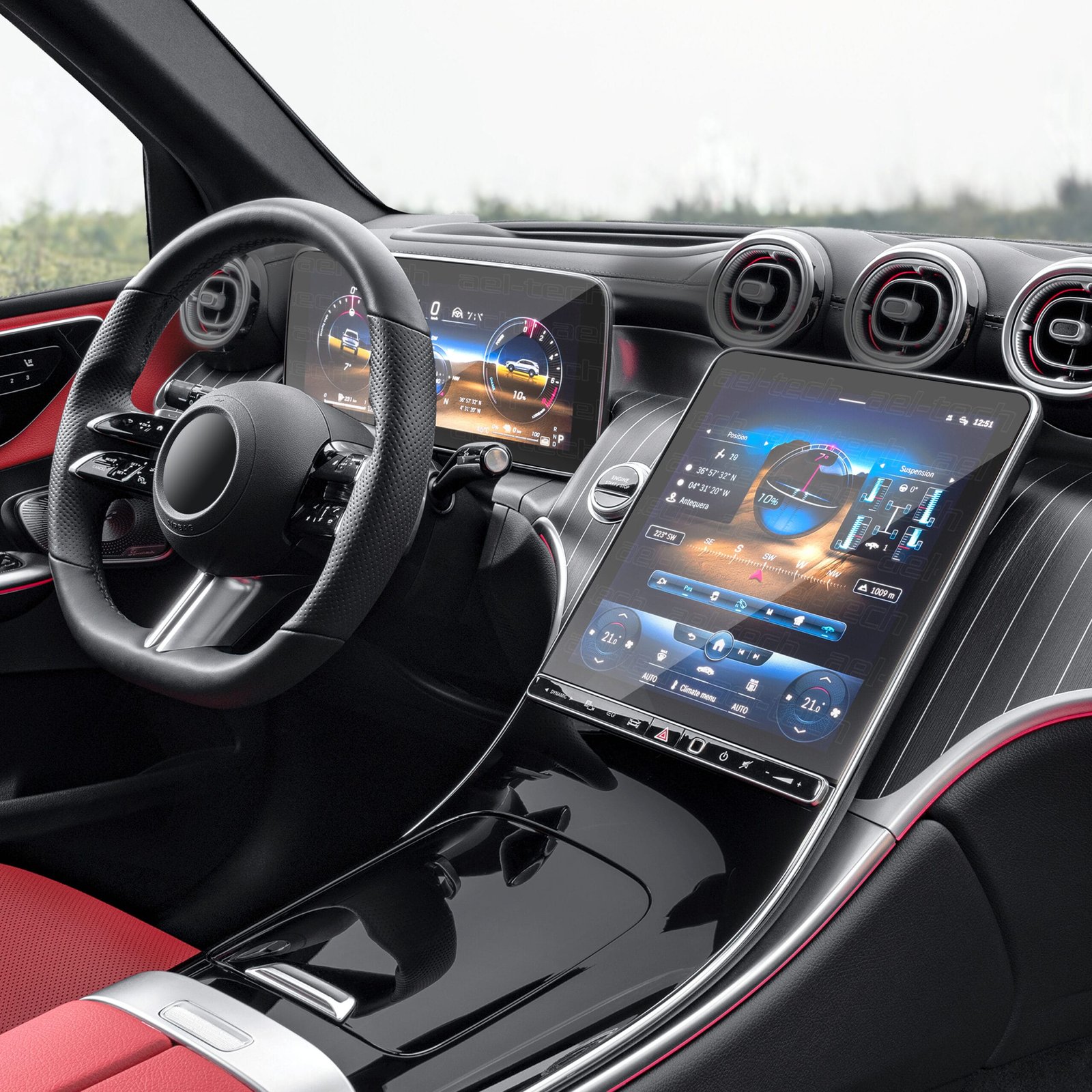 Mercedes GLC 2023-2025 Uyumlu Dijital Gösterge ve 11.9 inç Navigasyon 9H Nano Ekran Koruyucu 2’li Set