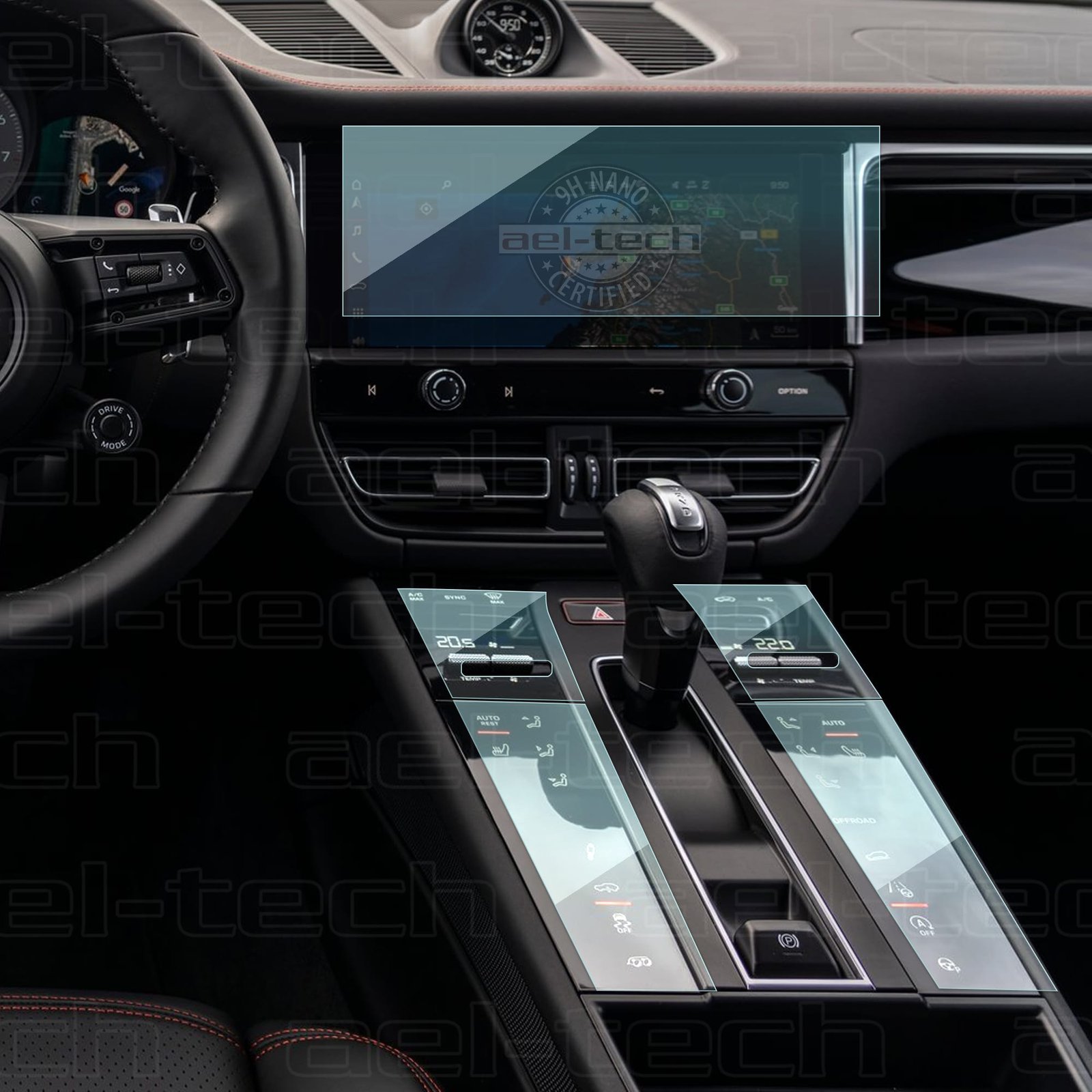 Porsche Macan Uyumlu Vites Etrafı ve 10.9 Inç Navigasyon 9H Nano Ekran Koruyucu 5li Set