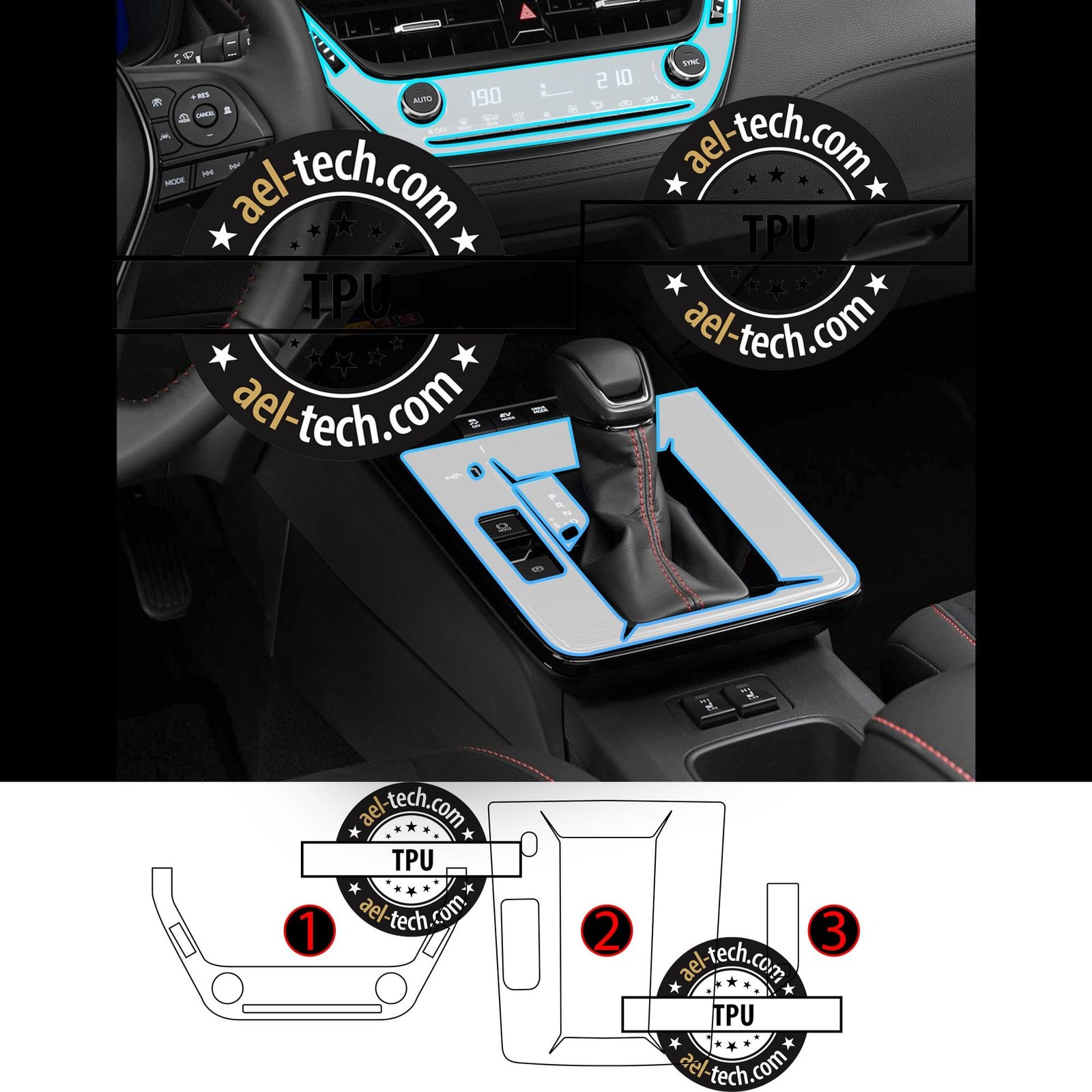 Set, vites etrafı, vites gösterge ve klima üstü bölgeleri için tasarlanmış üç adet koruyucudan oluşur. Kurulumu kolaydır, hiçbir özel ekipman gerektirmez. Sadece birkaç dakika içinde aracınızın iç tasarımını dönüştürebilir ve koruma sağlayabilirsiniz. Bu set ayrıca vites bölgesindeki hassas detayları ve klima üstü panelleri koruyarak araç içindeki estetik uyumu muhafaza eder.
